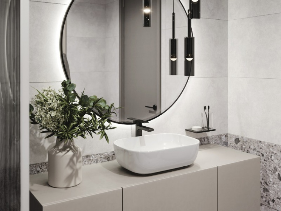 Керамогранит State светло-серый ректификат 90x45 8мм матовая Meissen