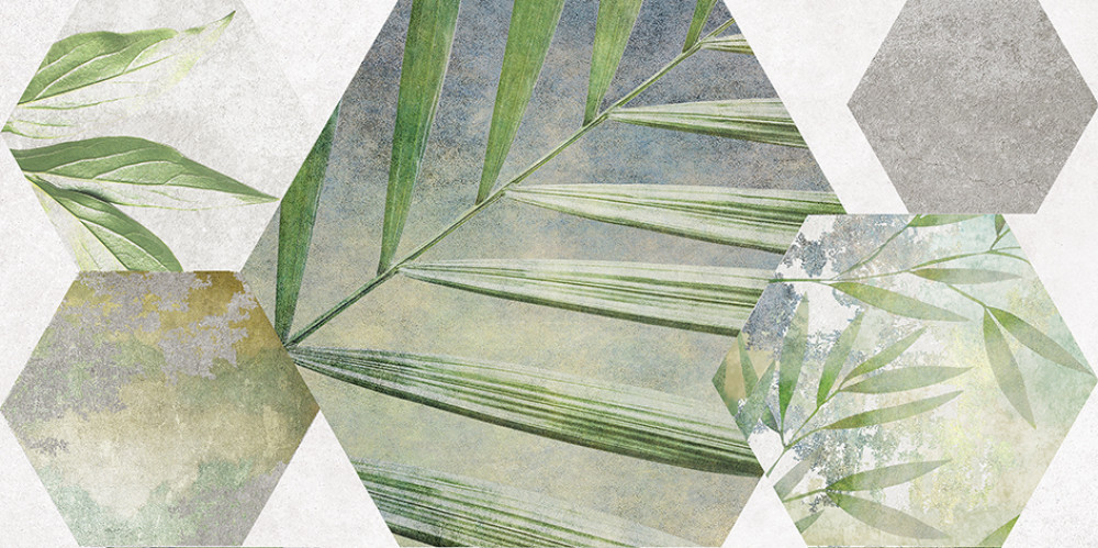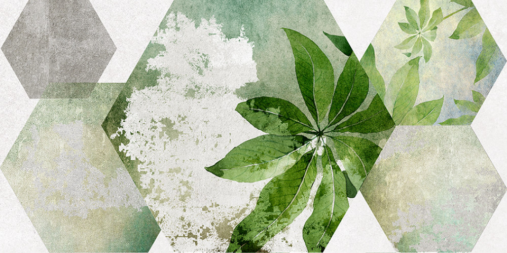 Декофон Laparet Focus настенная зелёный ботаника 34090 глазурованная матовая 50x25