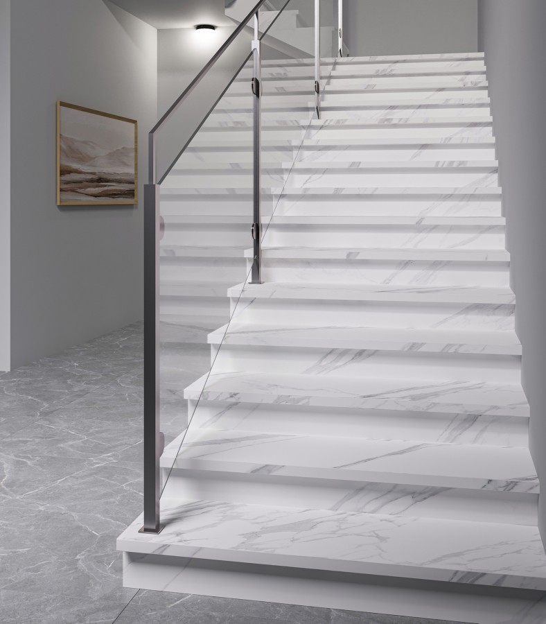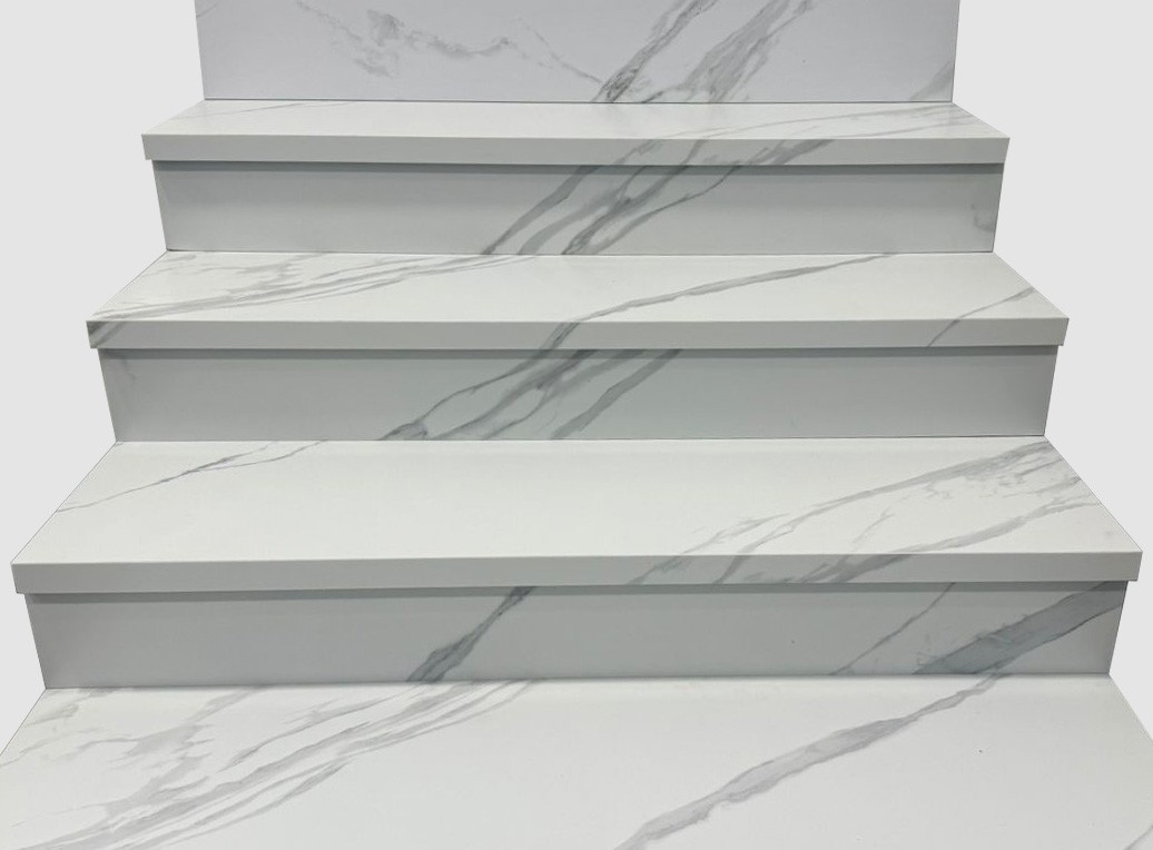 L Ступени Statuario Calipso Matt С Подступенником матовая 120x32 8мм