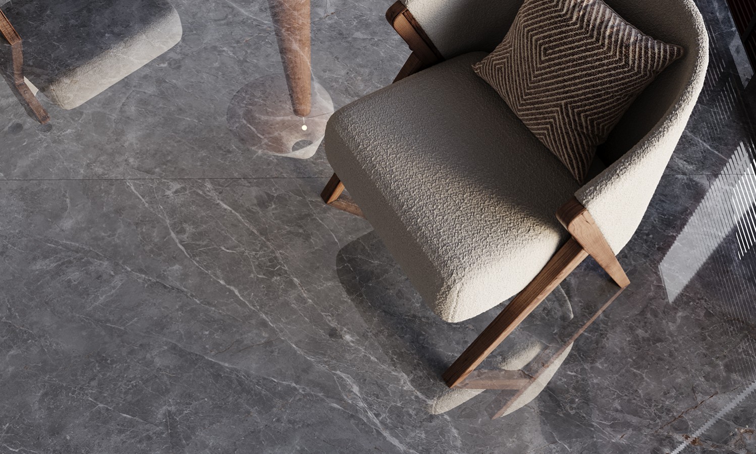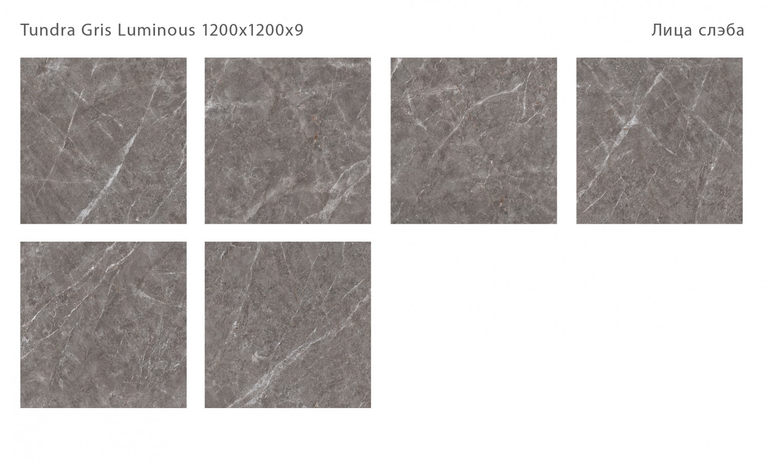 Керамический слэб Polished Tundra Gris Luminous полированная зеркальная 120x120 9мм Staroslabs