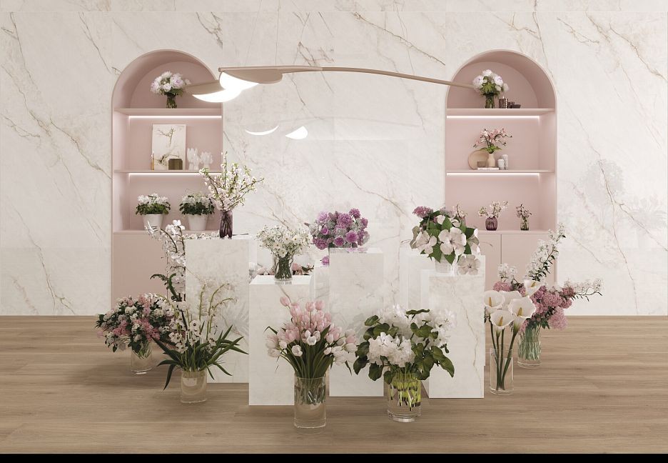 Керамогранит 100x100 White Sp/100X100X08/R Shaped Dahlia матовая белый мрамор 8мм Museum