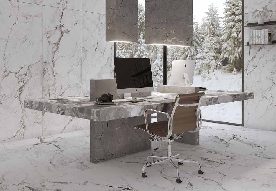 Керамогранит 275x100 4D Iceberg Sp/100X275/R Shaped Sublime матовая белый мрамор 6мм Museum