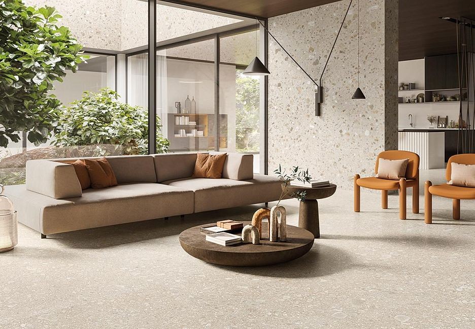 Керамогранит 120x120 Sabbia Mix Rett Lombarda Plus матовая бежевый терраццо 9.5мм Ergon