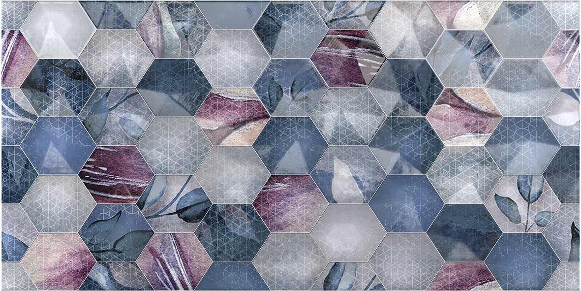 50x25 Ницца настенная цветы рельеф глянцевая синий
