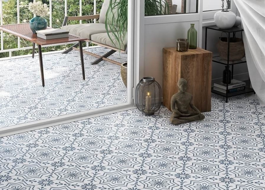 Плитка Yurtbay 20x20 Samos Blue Matt Glazed Porcelain S16861.6 матовая белый с рисунком 9мм