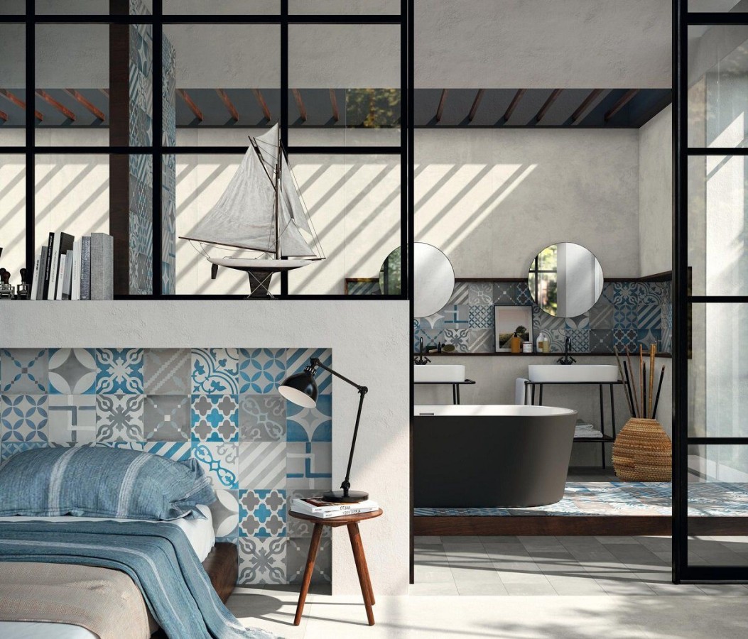 Плитка Atlas Concorde 20x20 Venti Boost Blue Mix A3Oq матовая мультиколор бетон, цемент, краска, штукатурка, с рисунком 9мм