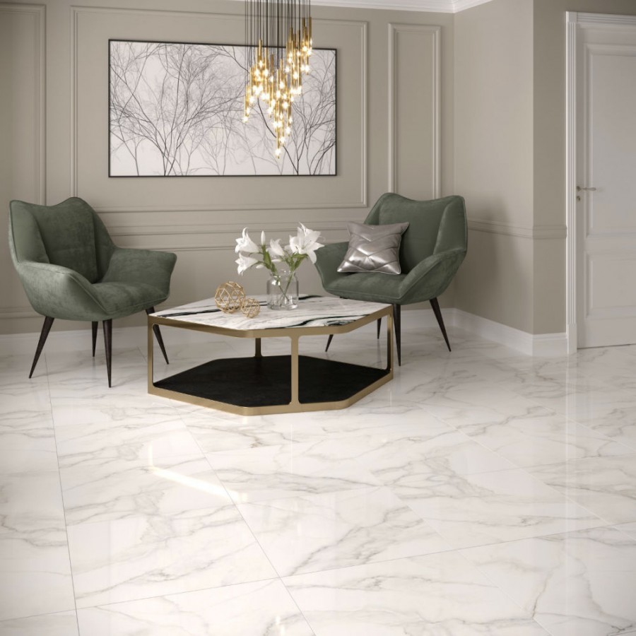 Керамогранит Gracia Ceramica 60x60 Carrara Premium white белый PG 01 глянцевая, полированная