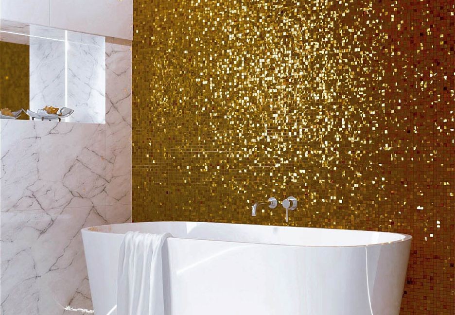 A 2x2 Стеклянная Мозаика Золото Формованное Гофрированное Желтое Размер Чипа Gold глянцевая золотой 1.51мм Rose Mosaic